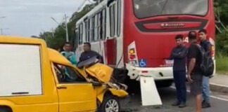 Veículo tem frente destruída durante colisão com ônibus na zona oeste...