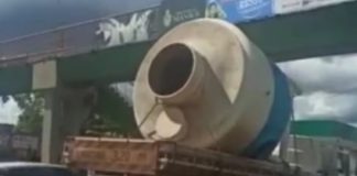 Caminhão com carga maior que plataforma entala em viaduto na Torquato...