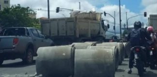 Tubulação de esgoto despenca de caminhão na zona leste de Manaus