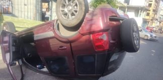 Após colisão, carro capota na Avenida Ovídio Monteiro em Manaus