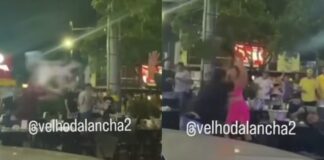 Vídeo mostra confusão e cadeiradas entre homens na praça do caranguejo,...