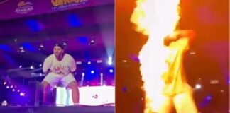 Zé Felipe quase tem rosto atingido por chamas durante show