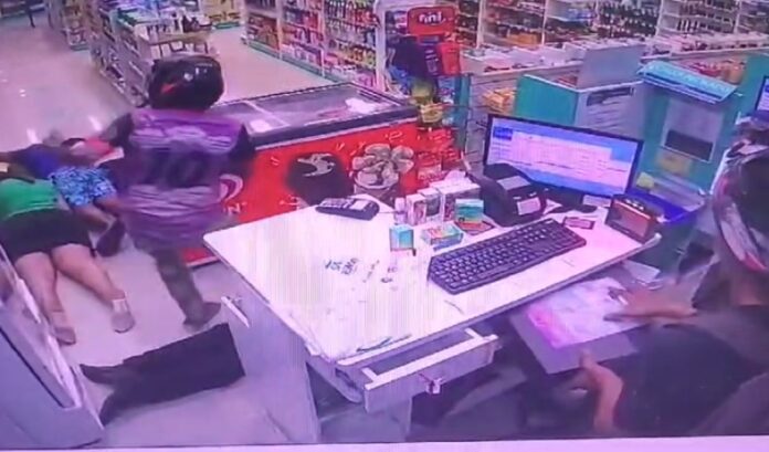 Uma dupla de criminosos não identificada, foi flagrada tocando o terror durante assalto na noite da última segunda-feira (18), na Drogaria Santo Remédio, na Avenida André Araújo, Zona Sul de Manaus.