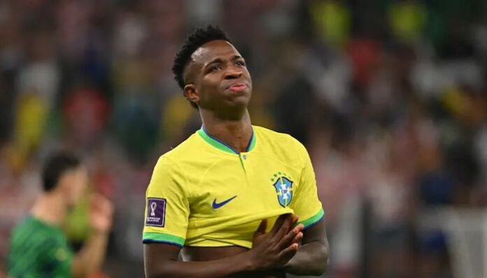 No último sábado (6), Vini Jr não jogou contra o Uruguai, pois cumpriu suspensão automática pela soma de dois amarelos na fase de grupos. O último deles foi dado pelo árbitro logo aos seis minutos de jogo, quando o camisa 7 atingiu James Rodriguez com o braço, após levar um balão do adversário.